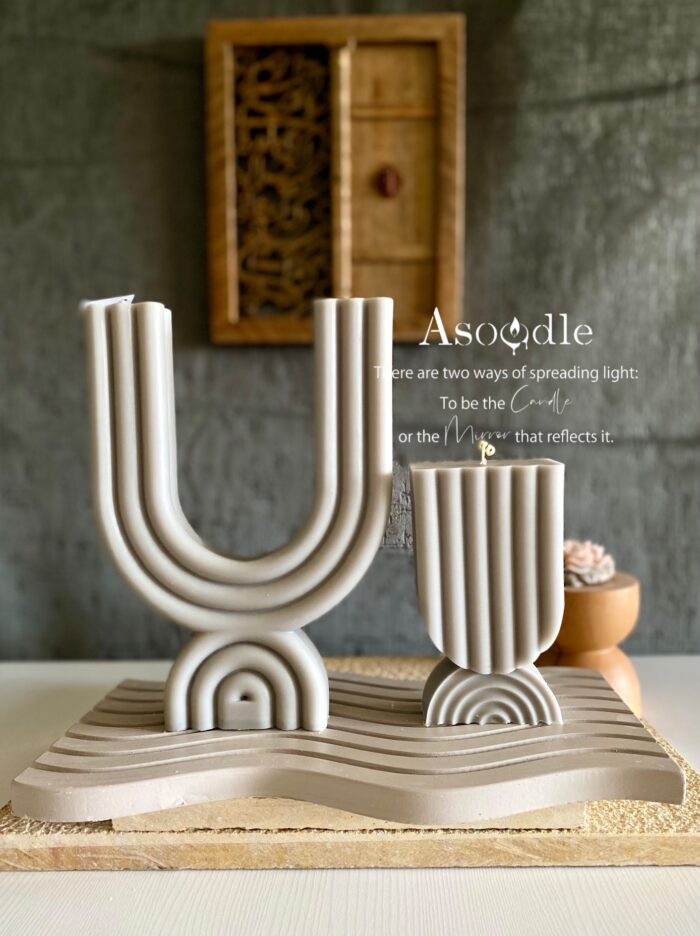 شمع یو بزرگ یکی از شمع های اختصاصی این مجموعه می باشد که با ارتفاع 25 سانت و پهنای زیاد یکی از خاص ترین کارهای مینیمال و هندسی باشد